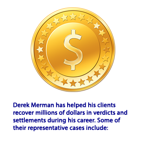 Many attorneys go their entire careers without winning a single verdict over $10,000,00; Mr. Merman did it in consecutive years. The opportunity to win a verdict of that size depends on the facts of the case and does not come around very often. Every time Mr. Merman has had the opportunity to demand more than $10,000,000 from a jury he has been successful. - Top 40 Trial Lawyers under 40 – The National Trial Lawyers Association 2012-present